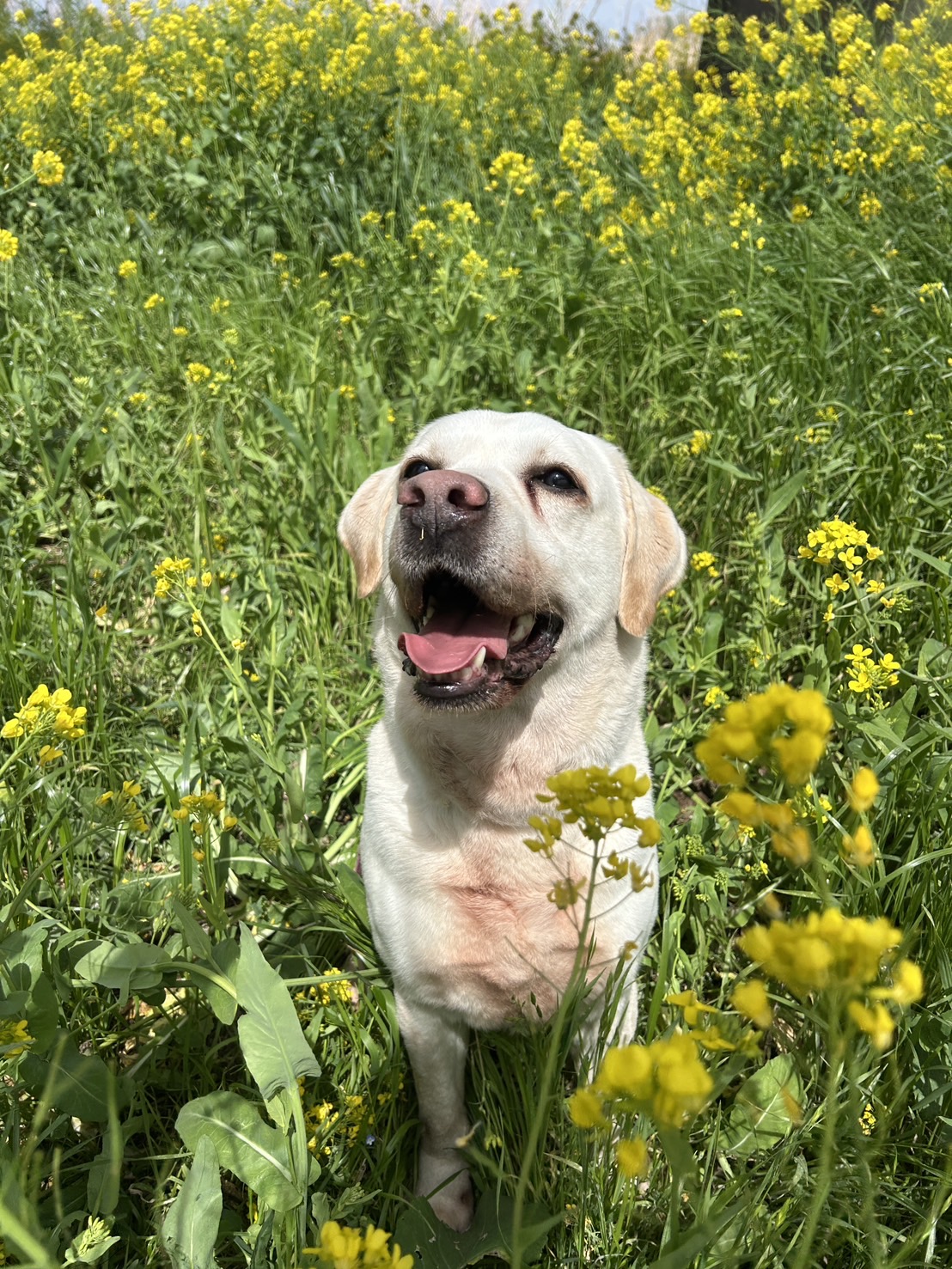 菜の花に埋もれてにっこり