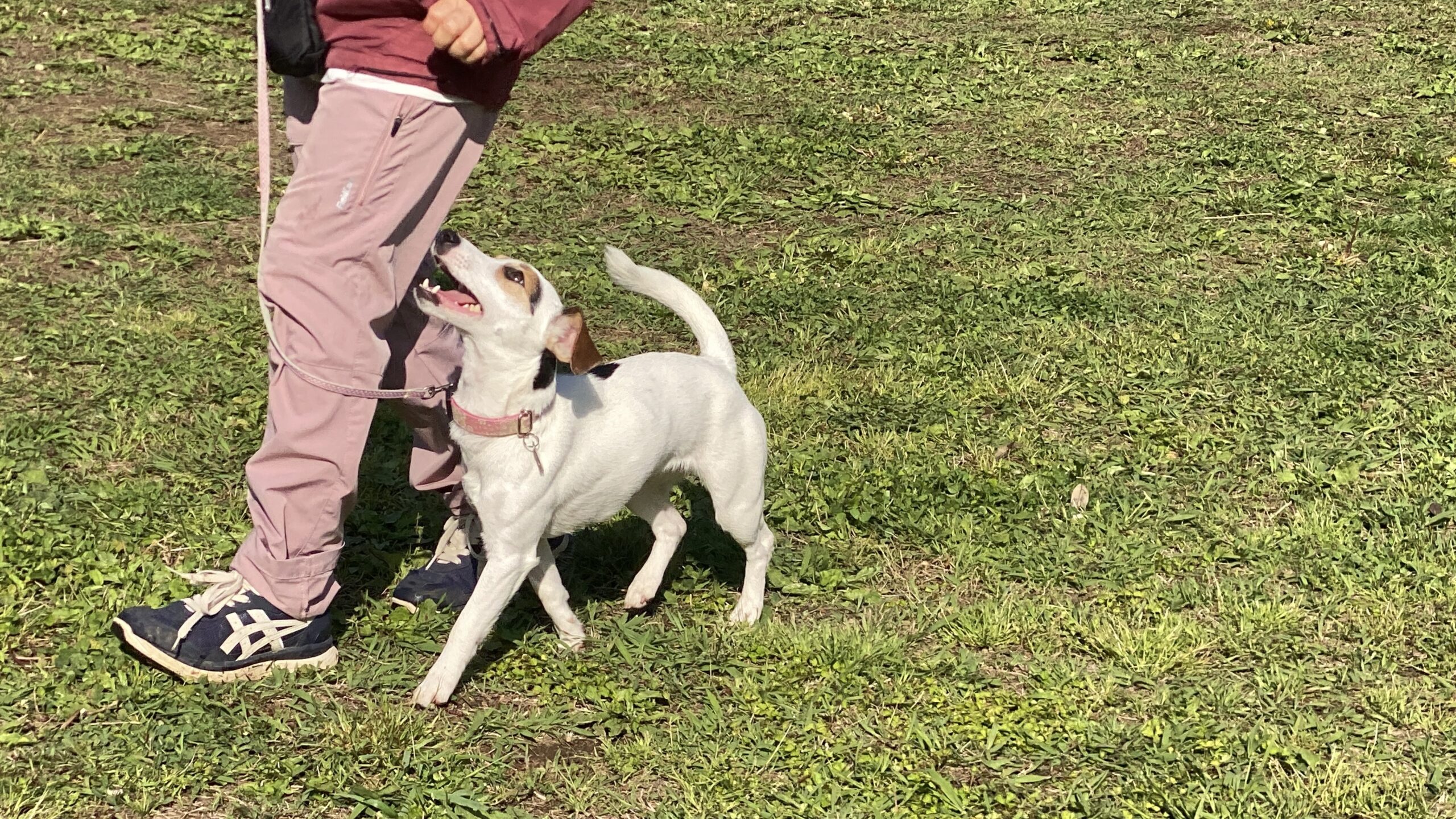 横に着いて歩いたり、マテやフセなどの日常で使いやすいコマンドの練習をしています。